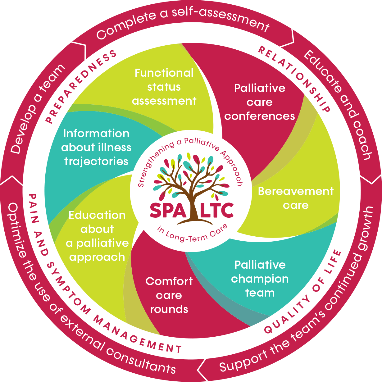 Strengthening the capacity of long-term care (LTC) homes to engage in and support early palliative conversations identifies and addresses end-of-life issues, decreasing stress on residents and families, and avoiding costly hospital stays. The palliative approach empowers residents, families, and staff to initiate timely discussions about palliative care or what to do in the event of a change in health status. Early research demonstrates that implementing a palliative approach to care in LTC leads to significant improvement in resident and family satisfaction with the quality of health communication and up to a 55% reduction in emergency department visits for residents in the last year of life. As a result, more LTC residents can be supported to live and to die in a way that better aligns with their values.